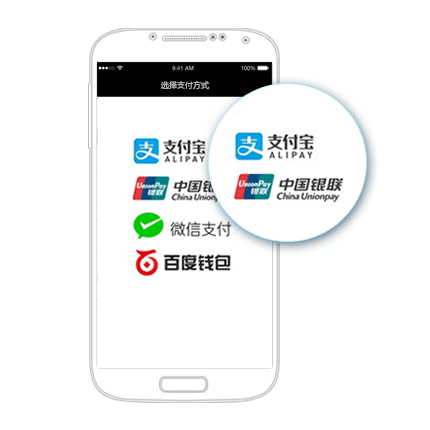 快速系统,为iOS/Android原生/H5 App提供支付解决方案:支持微信支付、支付宝支付、银联手机支付、百度钱包等。